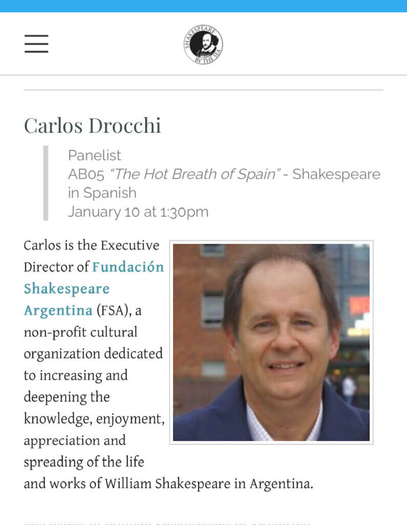 Carlos Drocchi, Director de la FSA «The Hot Breath of Spain- Shakespeare in Spanish